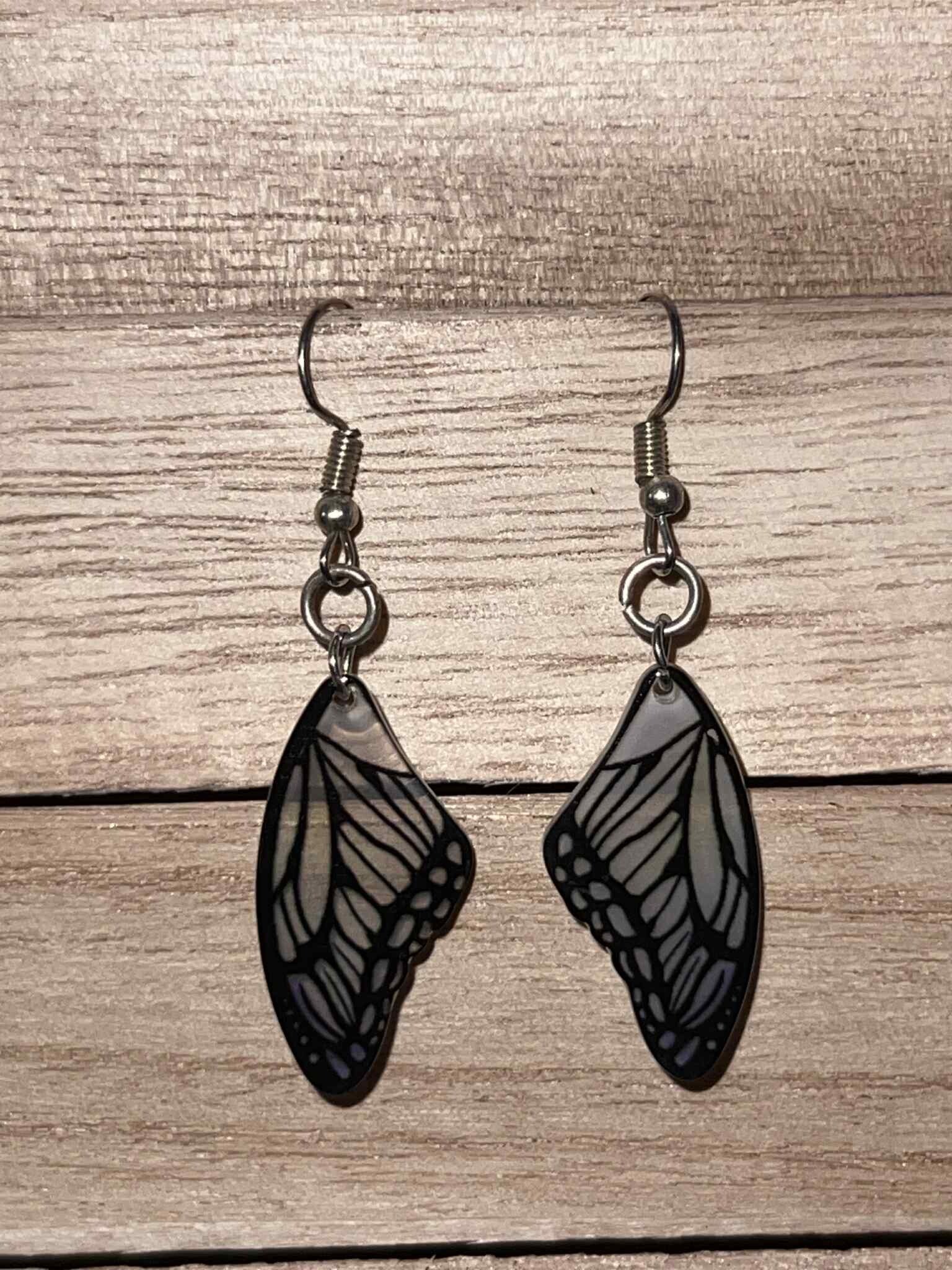 Butterfly wing earrings clear with a little tent of blue